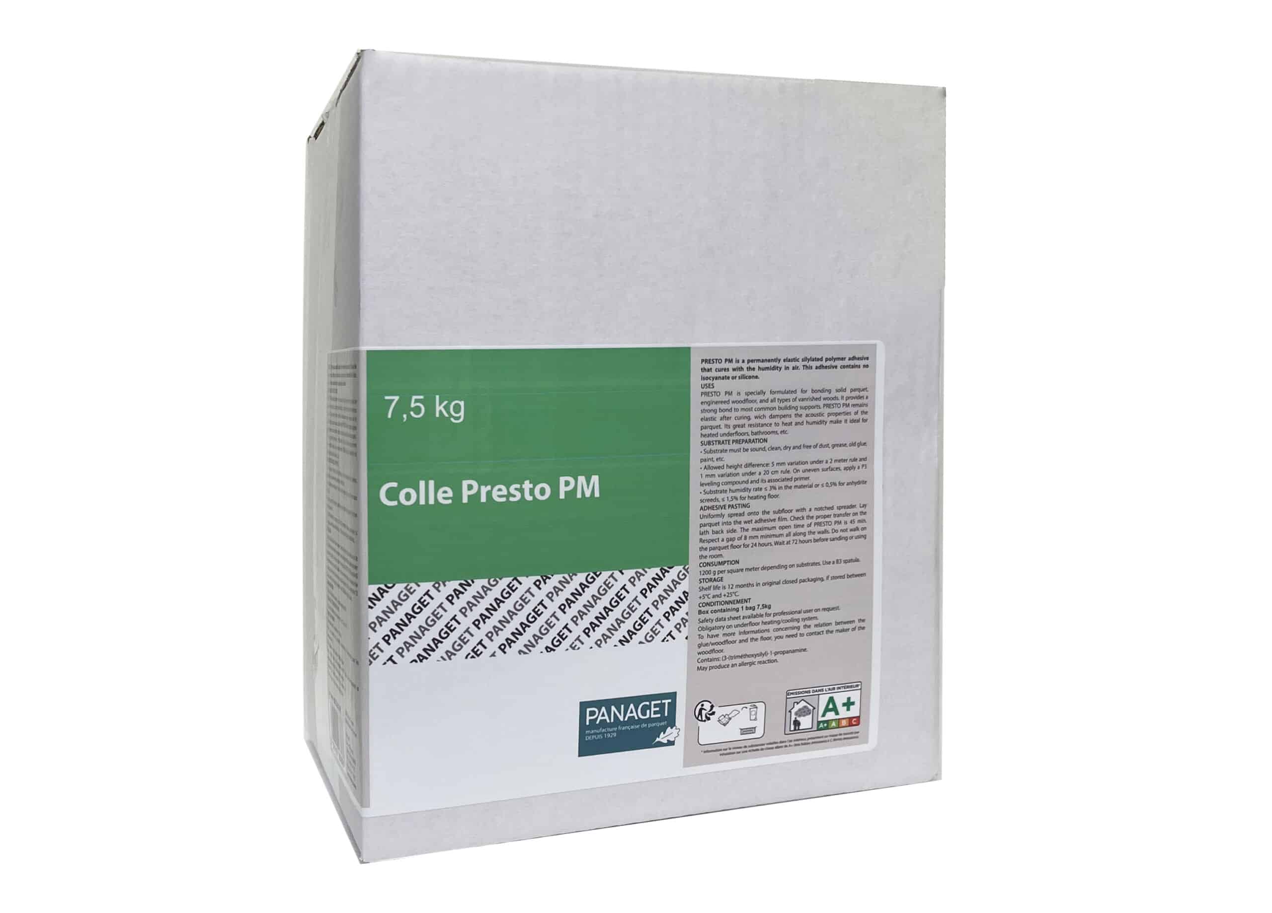 Colle mono-composant bas de polymère réticulant au contact de l’humidité de l’air ou des supports, Presto PM a été conçue pour le collage en plein de parquets massifs et contrecollés.